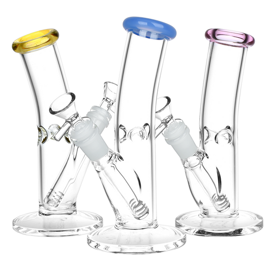 Classic Bent Neck Glass Straight Tube Bongs - Colors Vary