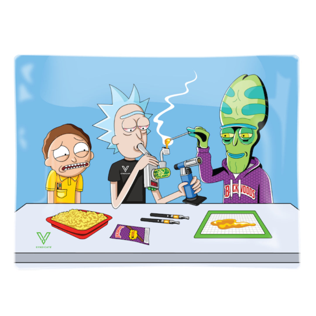 Elevate your smoking experience with the V Syndicate Dab Portal Glass Rolling Tray, a perfect blend of functionality and whimsical design inspired by the beloved Rick & Morty universe. This medium-sized rolling tray is not just a practical accessory; it’s a statement piece that will add a splash of humor and creativity to your smoking setup.
